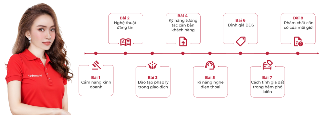 Chương trình đào tạo của Homeber được thiết kế dựa trên thực tiễn thị trường, giúp bạn nhanh chóng nắm bắt những kiến thức và kỹ năng cần thiết từ những ngày đầu.